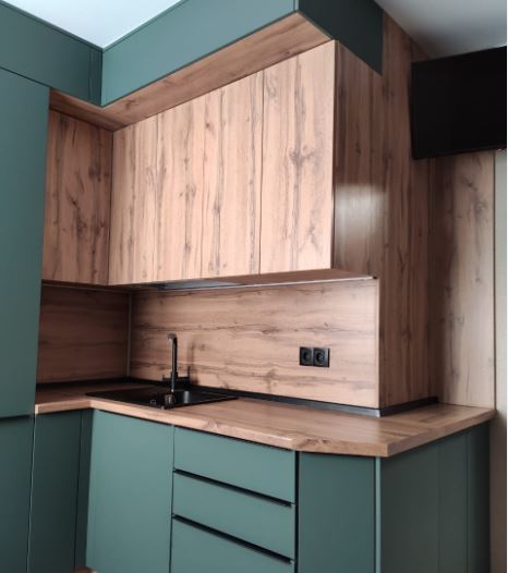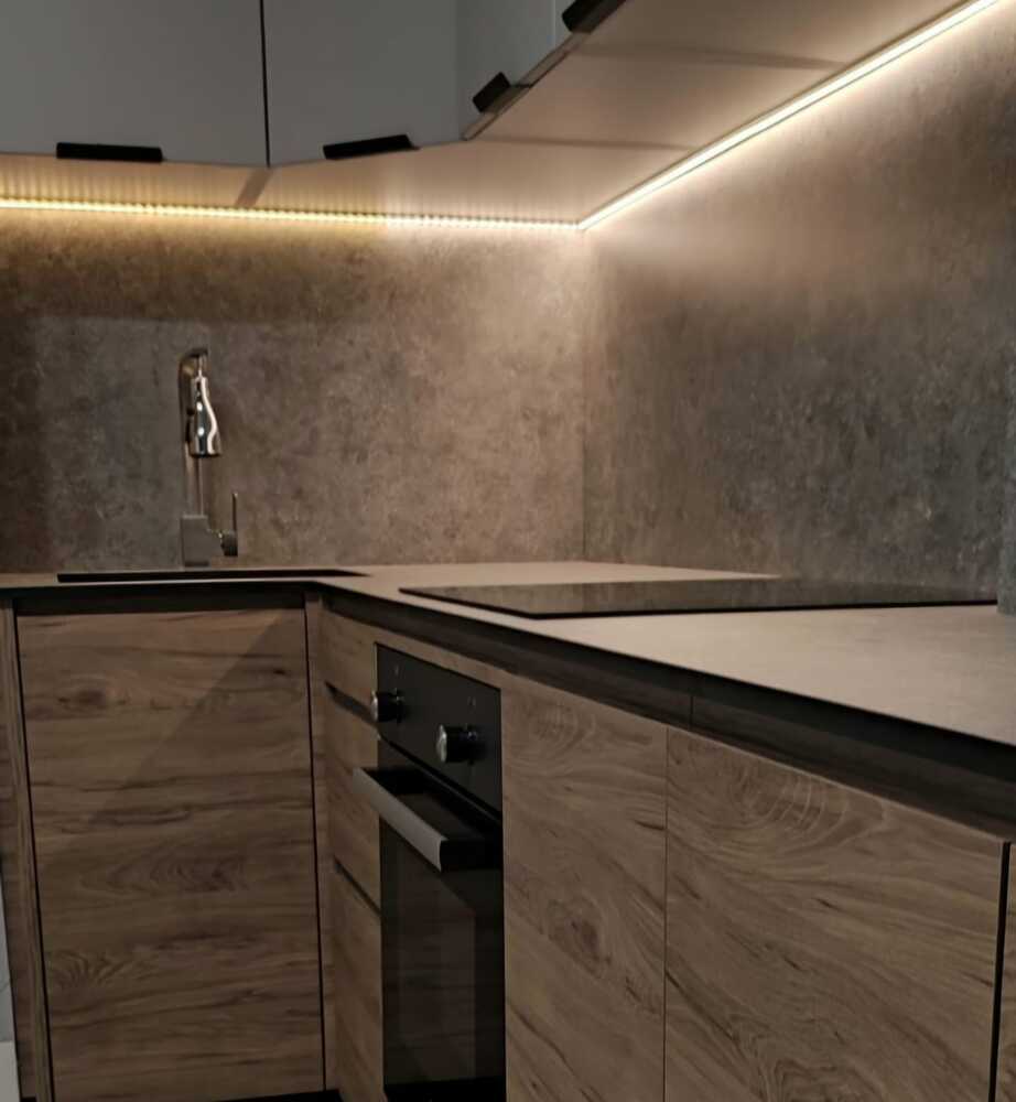 Установим столешницу и фартук из HPL пластика без стенного бардюра